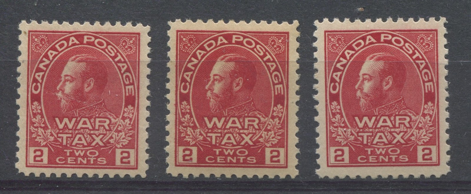 I believe that the dates given in Unitrade for the deep red must be incorrect because the 2c green, which replaced this stamp had already appeared in April 1922. So unless this was an emergency printing to cover a shortage of 2c greens, I think the correct dates are probably 1921-1922. Another notable observation is the discontinuity of dates: there is no group listed for 1916, 1919 and 1921-22. I assume that this is because the main carmine shade is intended as a "catch-all"for any shade not specifically falling into one of the listed sub-groups.