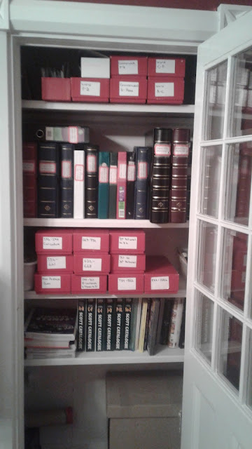 The British West Africa stock on the top shelf, Pre-1936 Nigeria in the albums, and Canada to 1971 in the boxes on the bottom two shelves.
