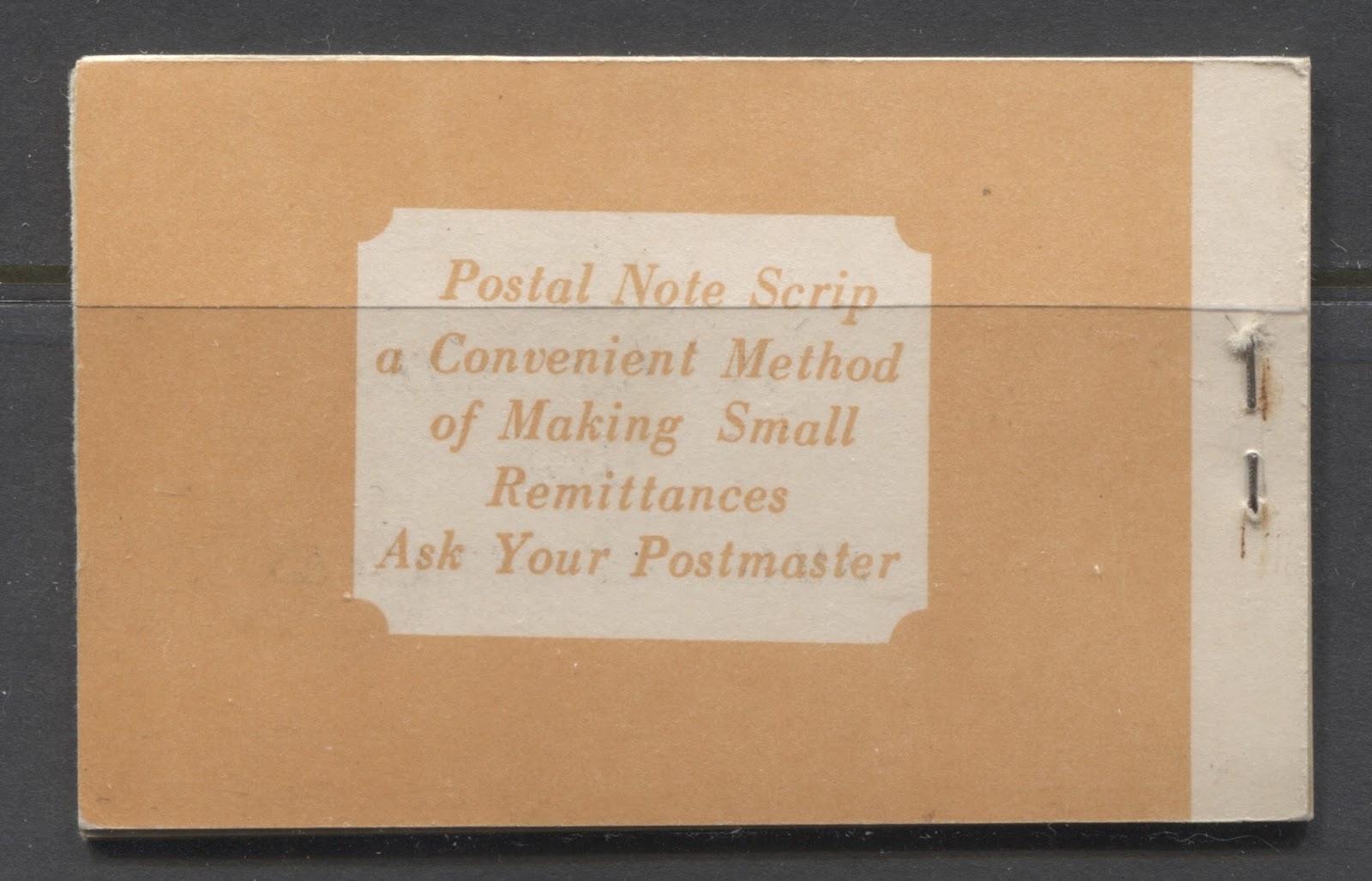 Another aspect of the booklets from this issue that adds to the complexity of the booklets is the length of the staple that was used to bind the cover. Believe it or not, different staples of different lengths were used, and some of these are very rare. Below is an example of what I am referring to on the 1947 gift booklet: