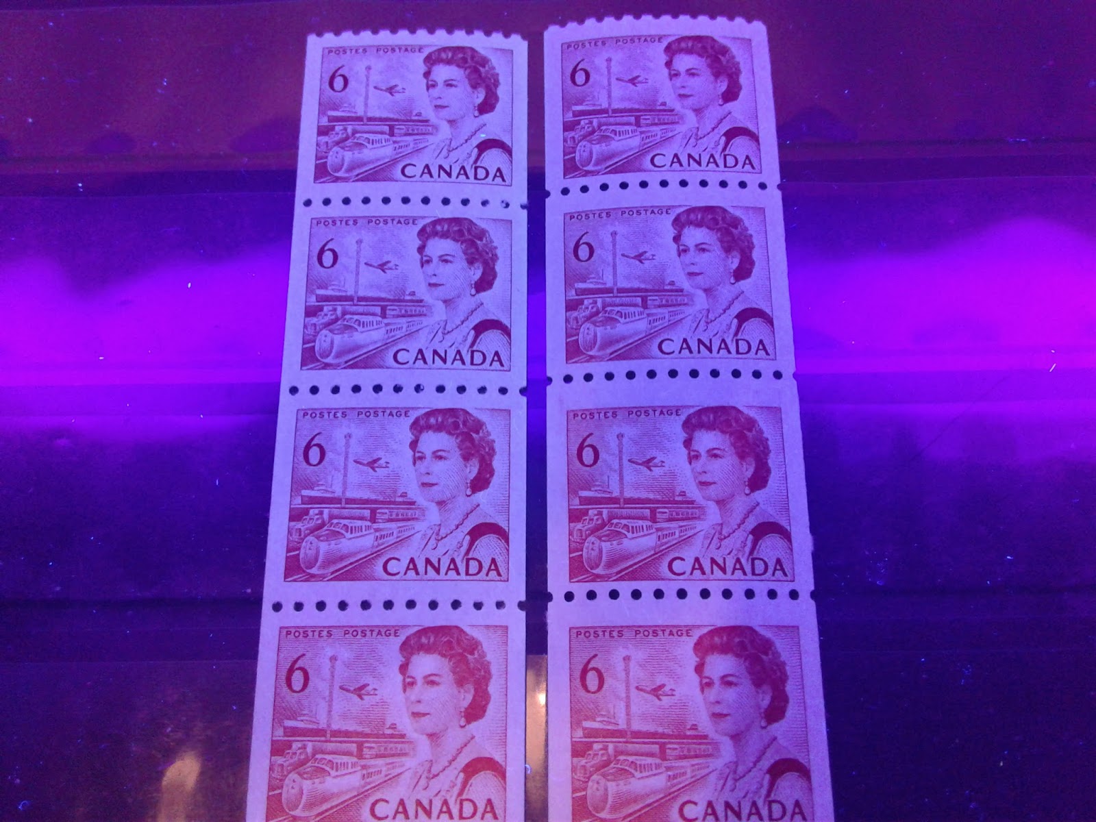 Unitrade lists these coil stamps as existing on either dull fluorescent paper, or hibrite paper. In reality, the so called hibrite paper varies from a high fluorescent paper to a true hibrite, while the dull fluorescent paper also shows variations. Neither of these types of variations are mentioned or listed in Unitrade. The pictures below show some of these variations.